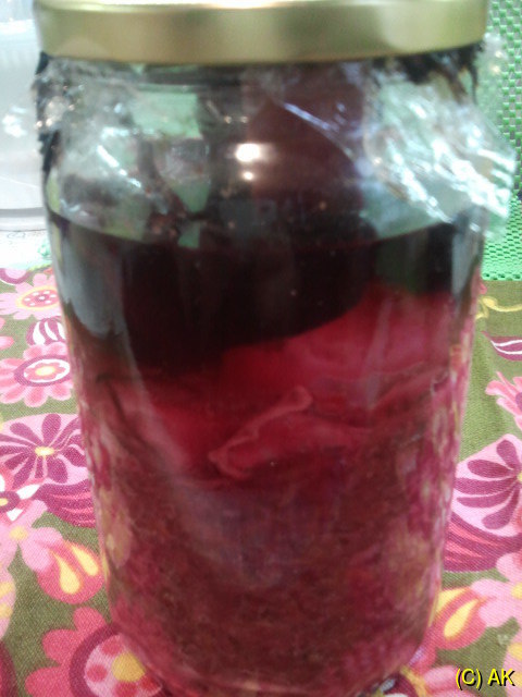 Tegyük napos ablakba és tartsuk szobahőmérsékleten 3-6 hétig. Naponta egyszer rázzuk fel. 6 hét után textilpelenkával szűrjük le és sötét üvegben tároljuk. Figyeljünk rá, hogy a tinktúra-lé tiszta legyen.