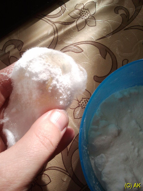 | Vattapamacsra tegyünk finomított napraforgó olajat és szórjunk rá szódabikarbónát. Átdörzsöljük és kész is.